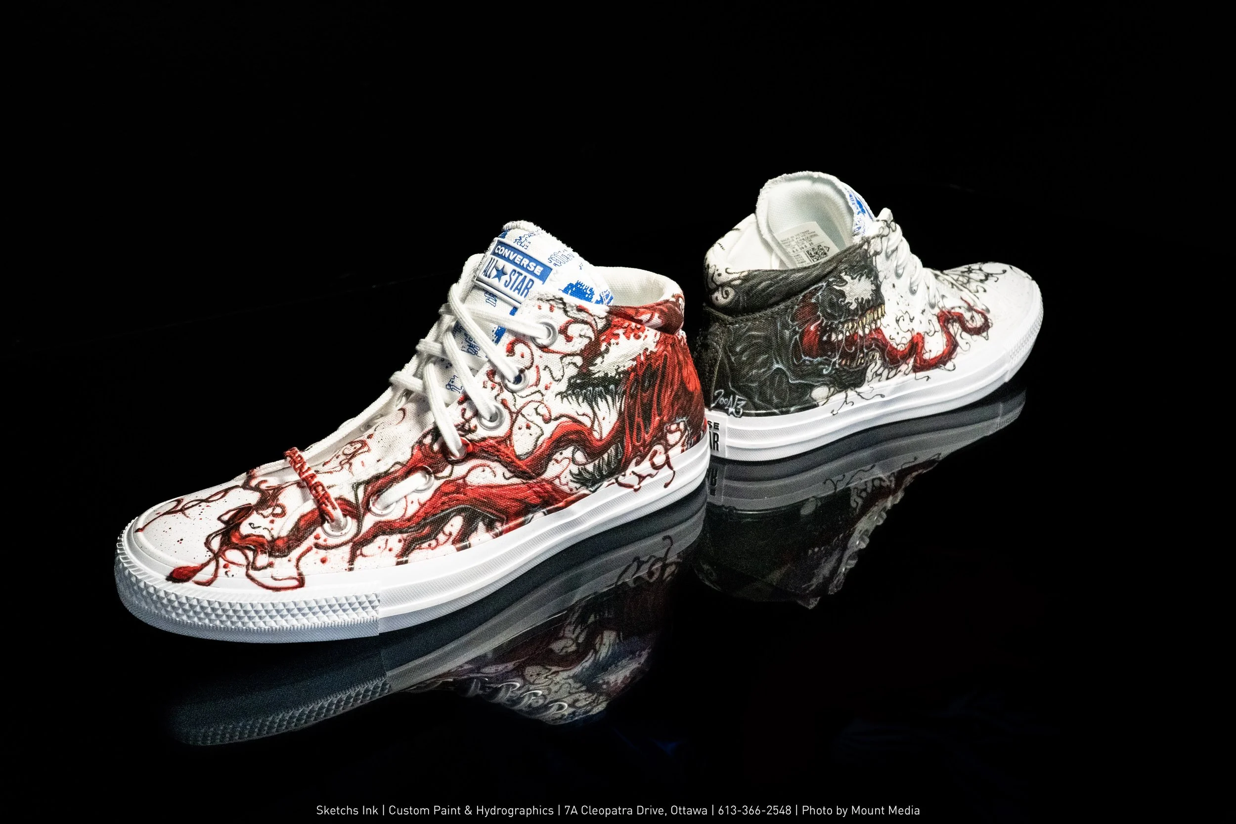 Custom Venom-themed Converse Chuck Taylors Photographed by Ryan Dennis Get An Estimate All Projects, Miscellaneous, Air BrushJeremy ConstantineauJanuary 21, 2022Sketchs InkShoes, Venom, Carnage, Marvel, Air BrushComment Facebook0 Twitter Reddit Pinterest0 0 Likes